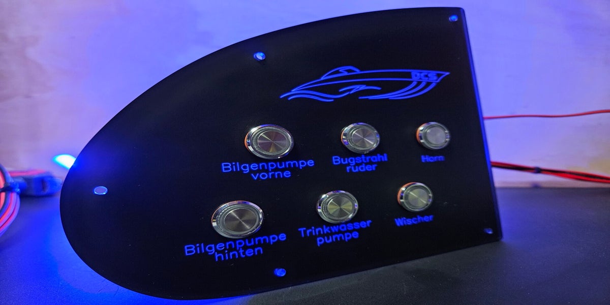 This switch panel is custom made for a HOC luxury yacht. Previously, all electronics on board were controlled via an iPad and an on-board computer. However, after a computer system crash, the owner decided to switch back to physical switches.